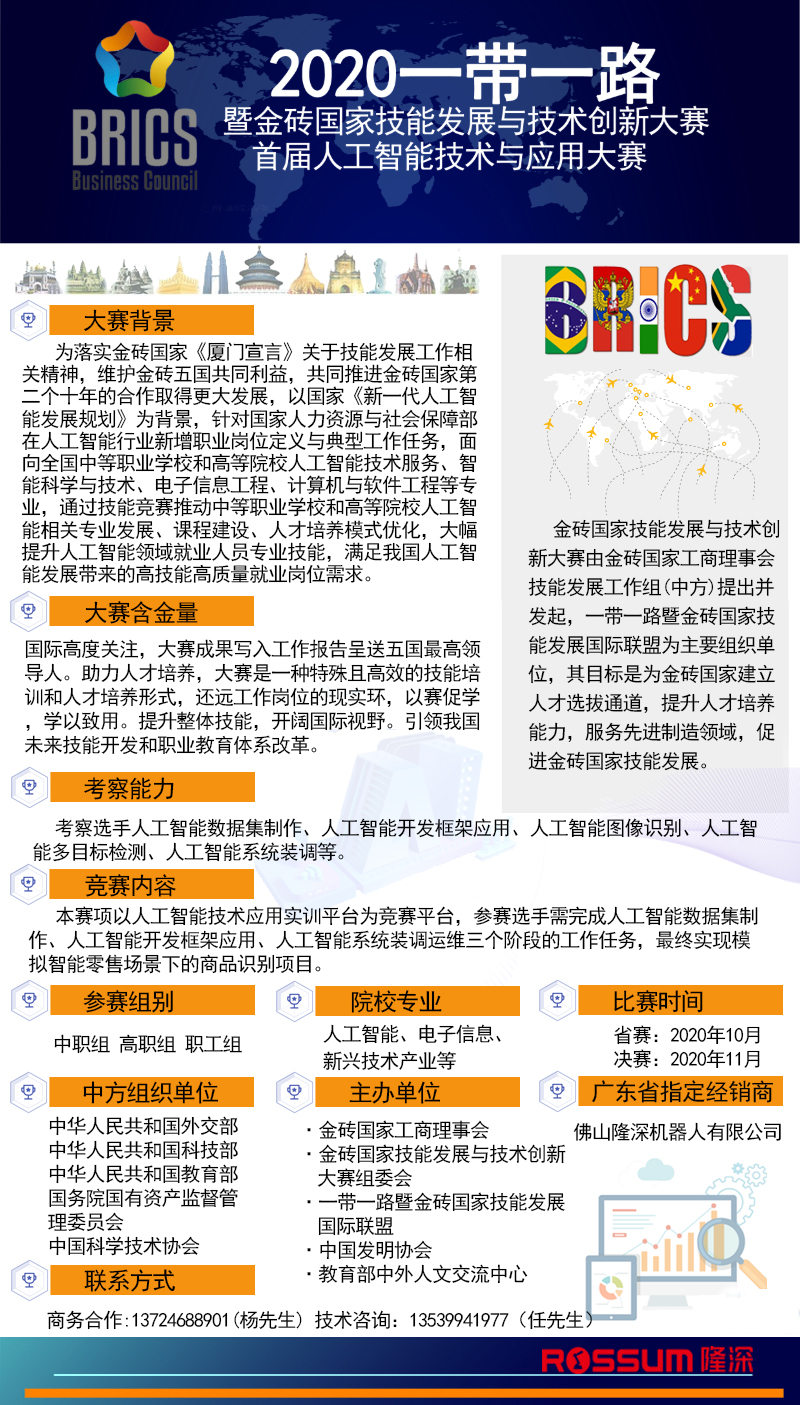 为此,金砖各国技能组将组织2020年第四届金砖大赛,其中,中国赛区的竞赛统称为一带一路暨金砖国家技能发展与技术创新大赛(以下简称一带一路暨金砖大赛或大赛)。
